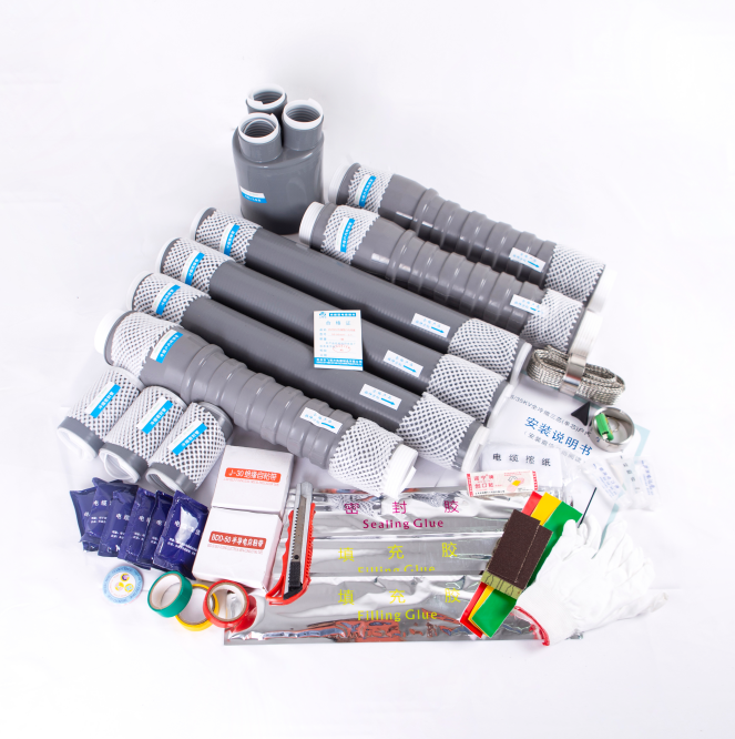 3、終端主體配合冷收縮分支指套、冷收縮絕緣管和冷收縮端子密封管;中間接頭采用三層防水密封工藝、對附件有著優(yōu)良的密封防潮性能。