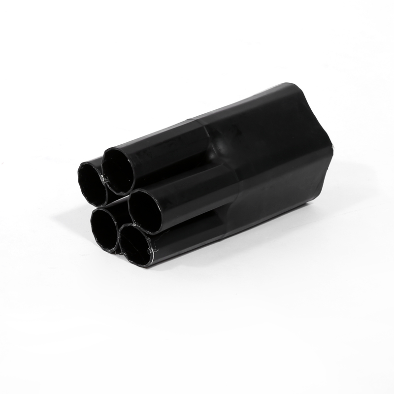 產品特點:采用交聯聚烯烴材料和熱熔膠復合而成,套在多芯電纜線芯分支處,加熱即收縮,內壁的熱熔膠會將電纜緊緊粘住,起到防水防潮密封保護作用,外層的輻射交聯聚烯烴材料可起到電氣絕緣防護作用。